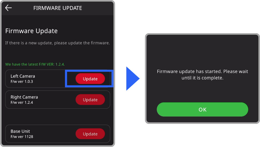 - Wenn das Modal "Firmware-Update" erscheint, tippen Sie auf die Schaltfläche "UPDATE"