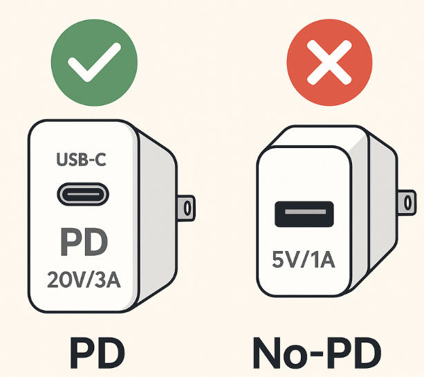 - Wenn auf der Verpackung oder Produktseite "USB Power Delivery kompatibel" oder "Maximale Leistung XXW" (z. B. 45W, 65W) steht, ist es PD-kompatibel