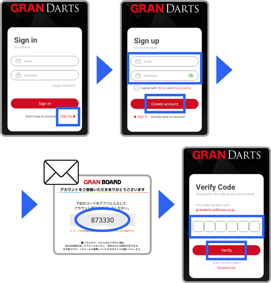 Para utilizar la aplicación Gran Darts, necesitas crear una cuenta GRAN.