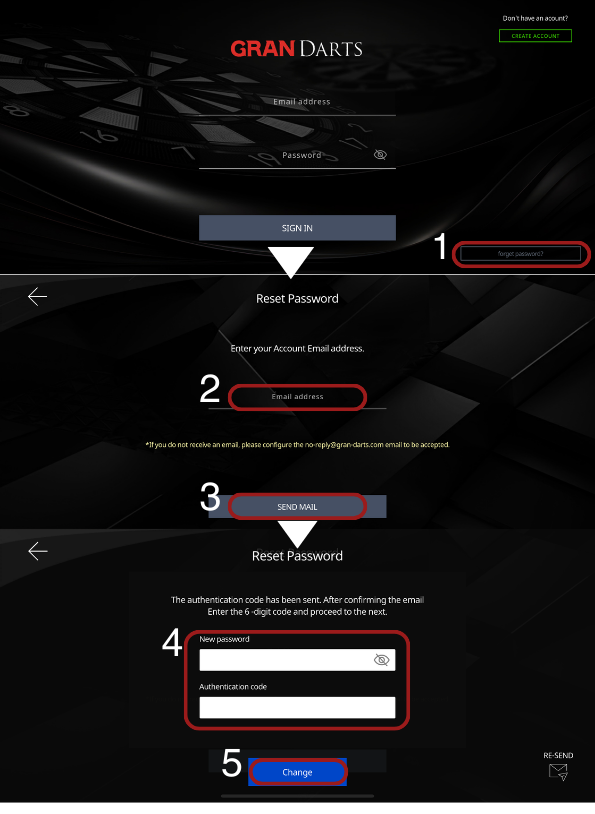 - Entrez le nouveau mot de passe et le code de vérification reçu dans l'e-mail