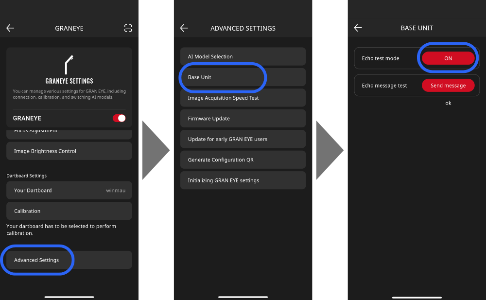 【1】ペアリングを確認しても問題が見つからないのに、ダーツを投げても一切反応がない場合は、エコーユニット(ECHO)が信号を正しく検知できていない可能性があります。