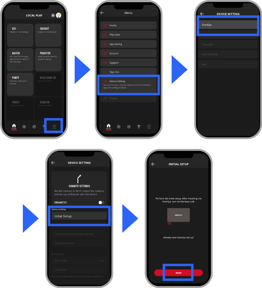 2. 連接 GRAN EYE 與 Gran Darts App 並進行初始設置